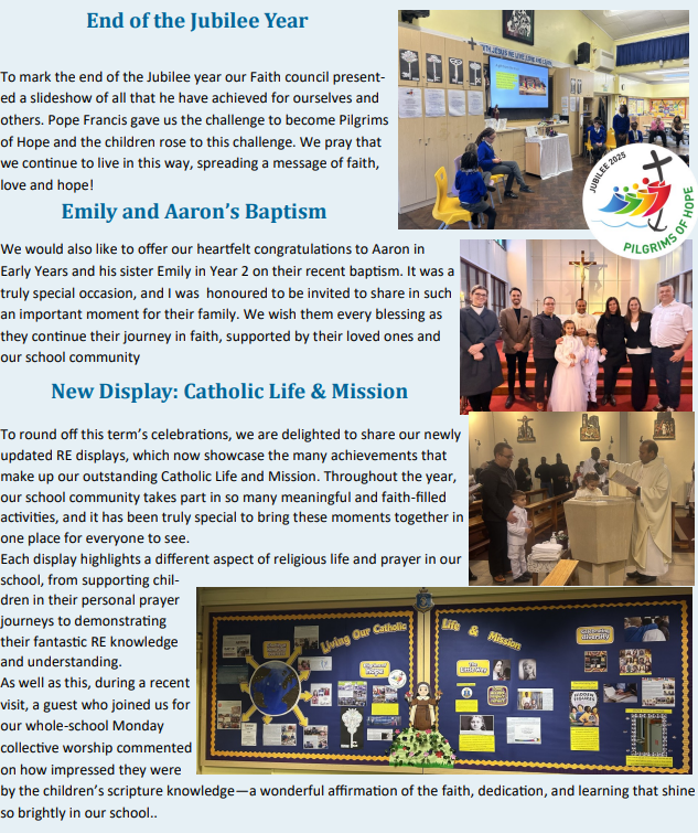 Our faith council has been selected, and they will represent our classes and school by helping to shape collective worship and organise events linked to our Catholic life and mission. We look forward to them building upon the council's achievements from last year, continuing to embody the spirit of our school community.