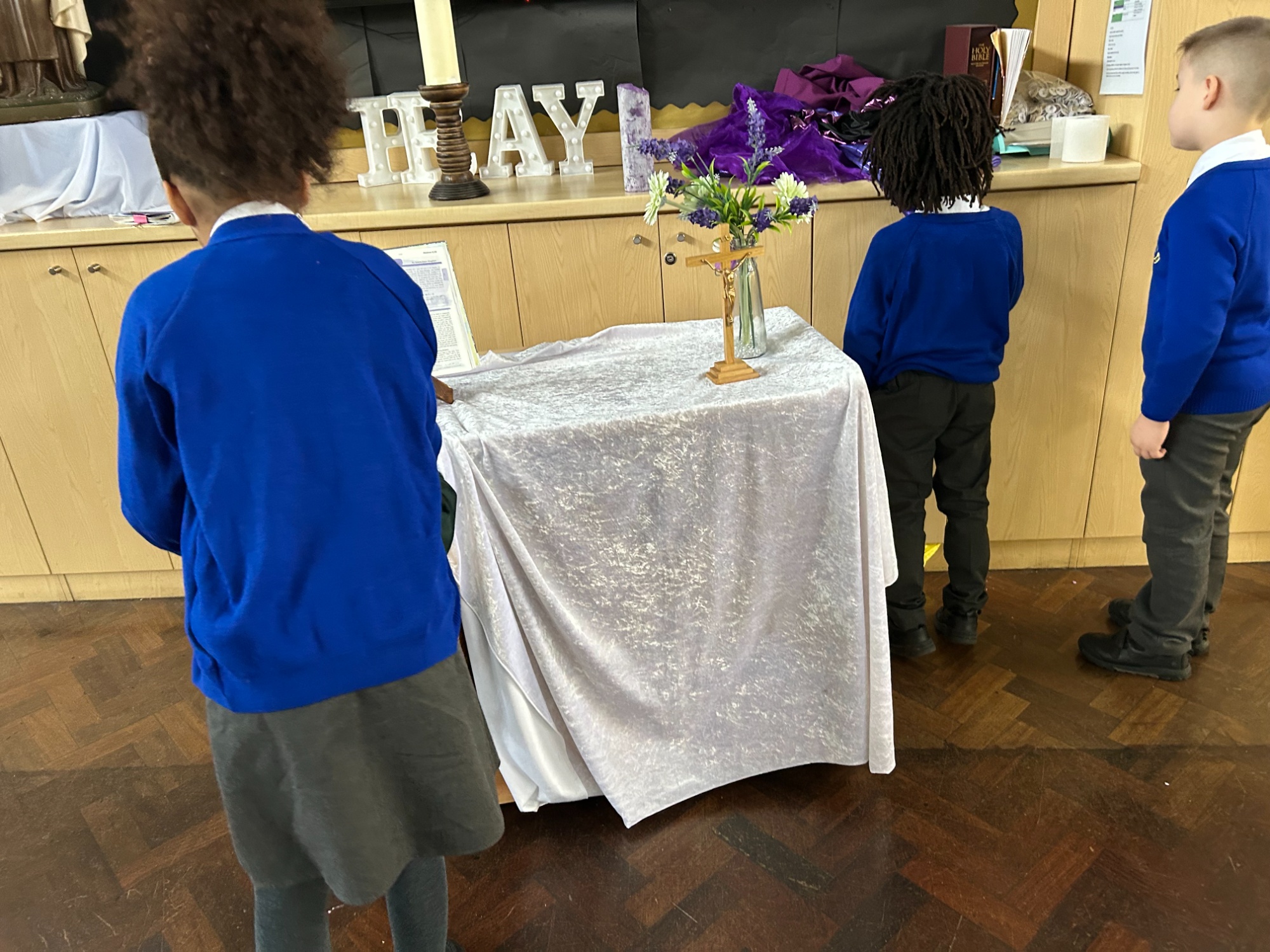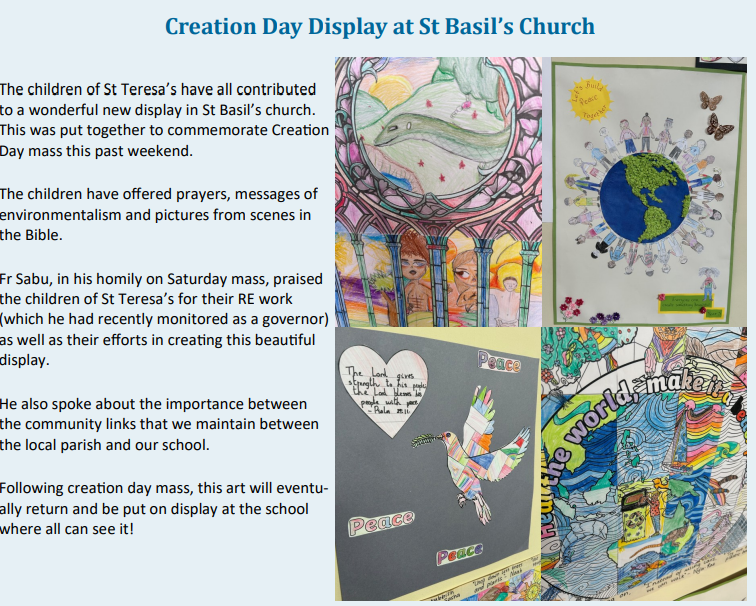 St Teresa's staff have helped the catechist's running St Basil's Holy Communion course by creating a display for them within the church.