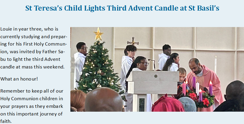 St Teresa's supports St Basil's  Holy Communion Classes